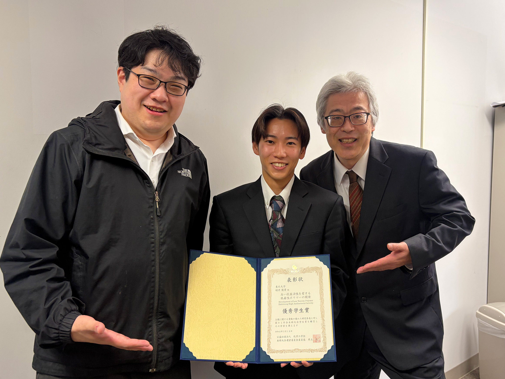 2026年03月18日、化学工学会第91年会において、笠井研究室の増井優貴さん(B4)が「優秀学生賞」を受賞しました。