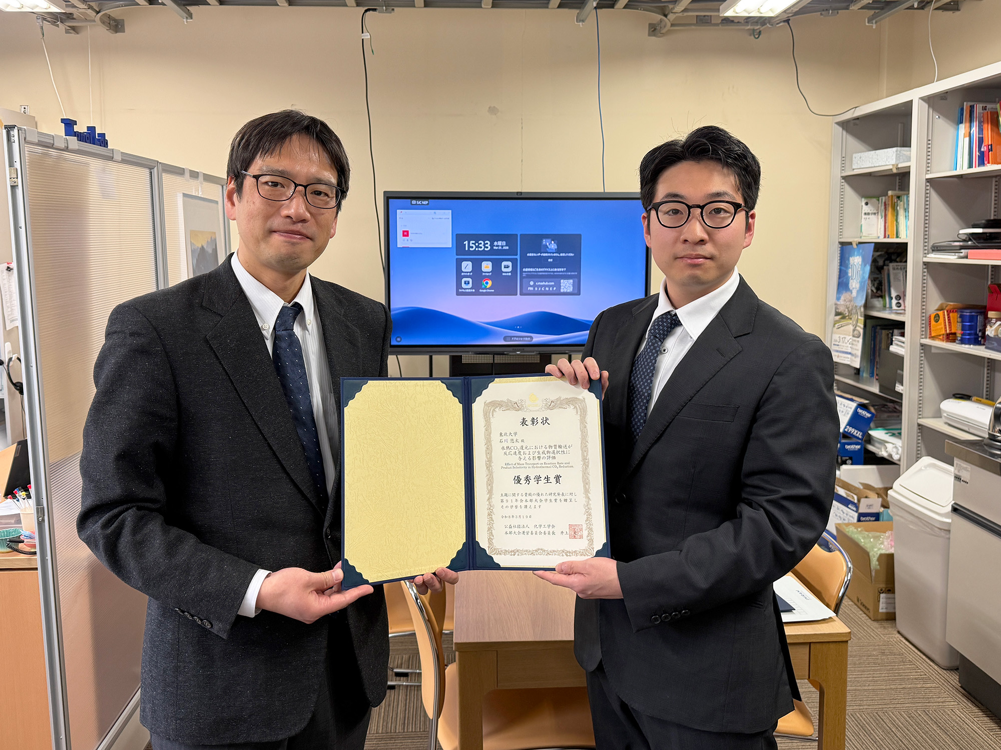 2026年03月19日、化学工学会第91年会において、笘居研究室の石川悠太さん(M1)が「優秀学生賞」を受賞しました。