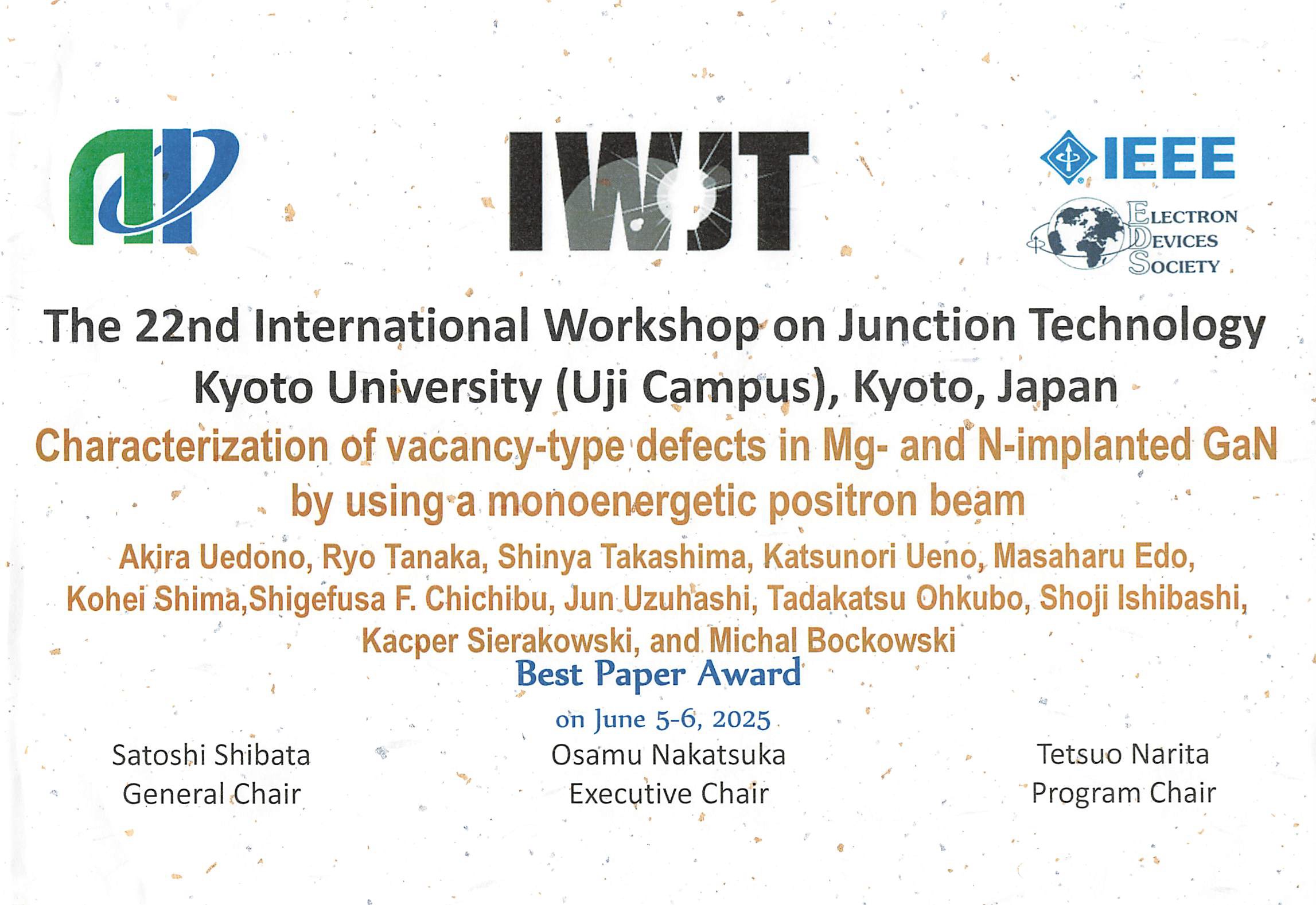 Best Paper Award of IWJT2025