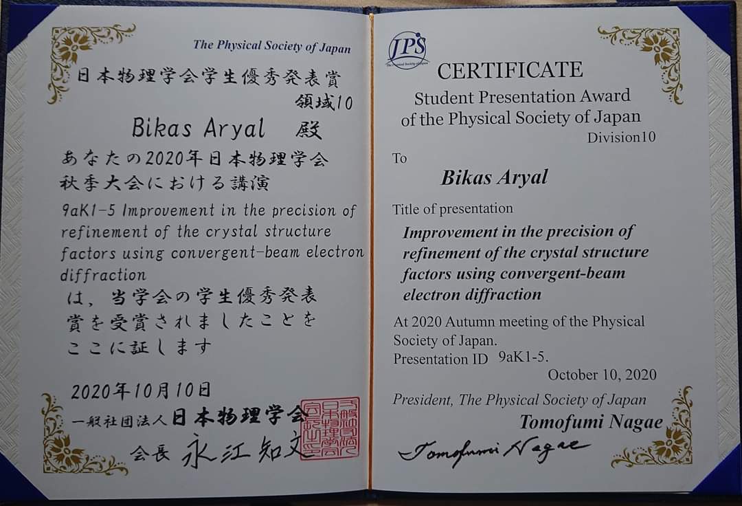 2020/12:D3アリアルビカス君が日本物理学会 2020年秋季大会にて学生優秀発表賞を受賞しました。