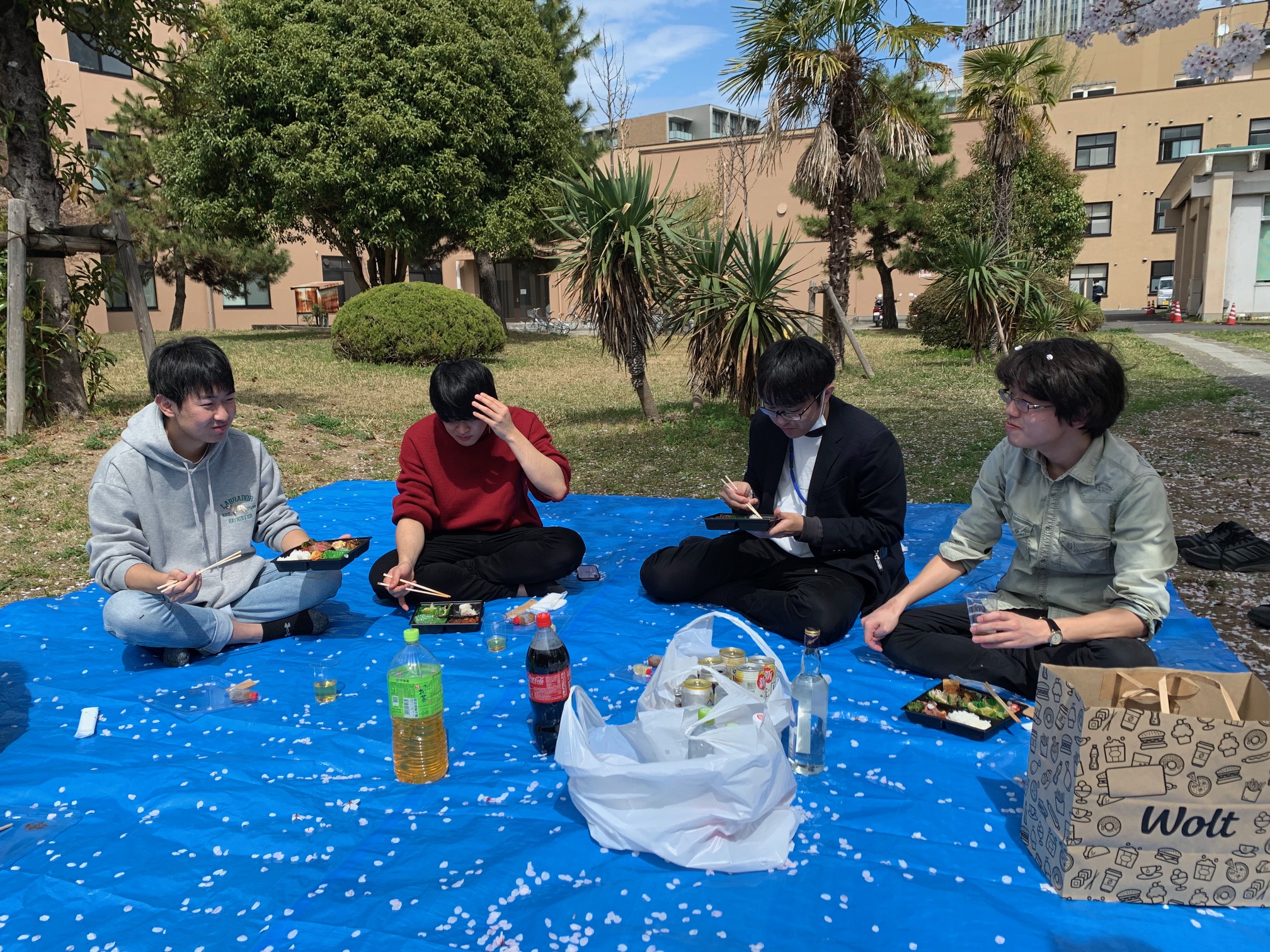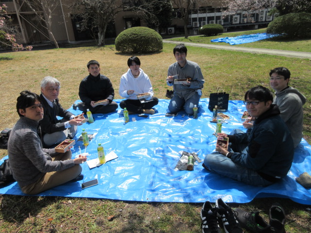 2025/4 : 研究室でお花見をしました。新メンバーの南君と太田君、ようこそ寺内研へ!