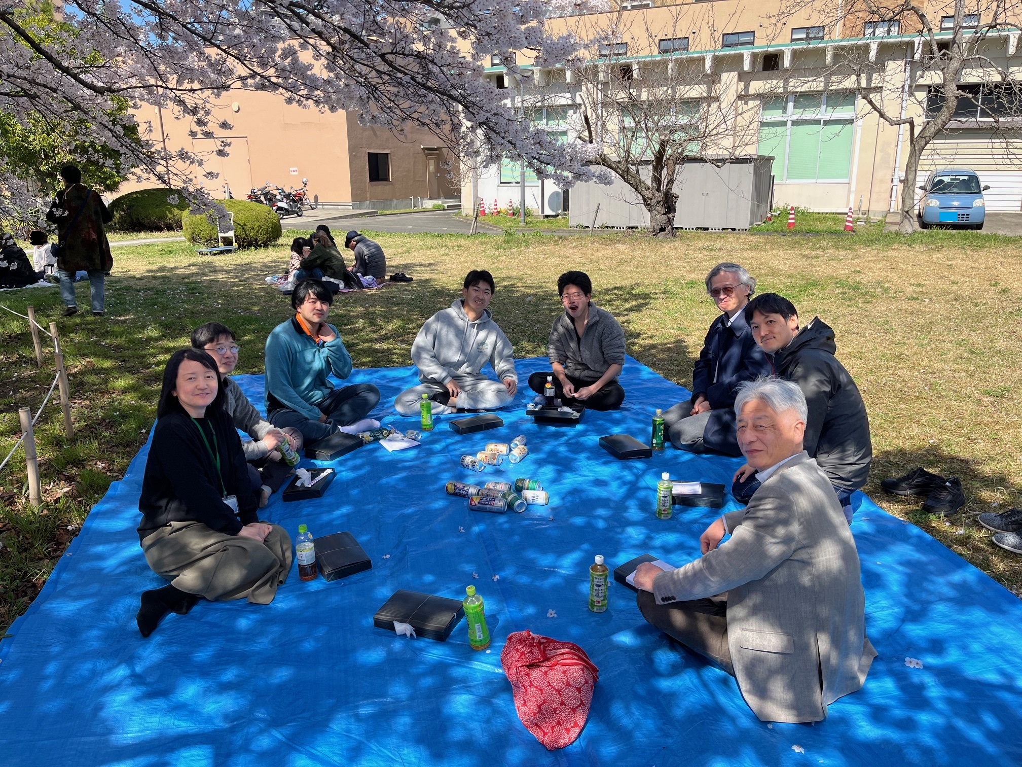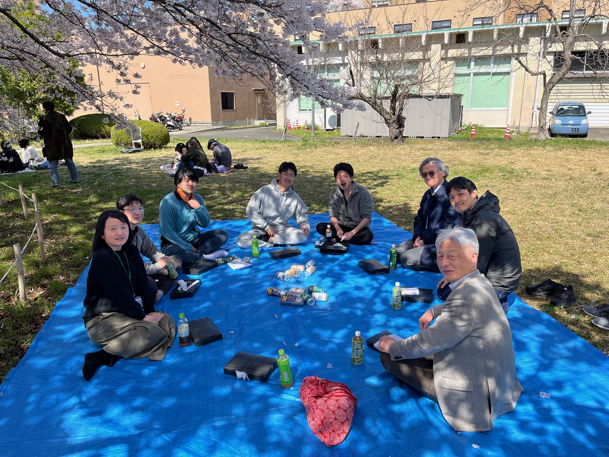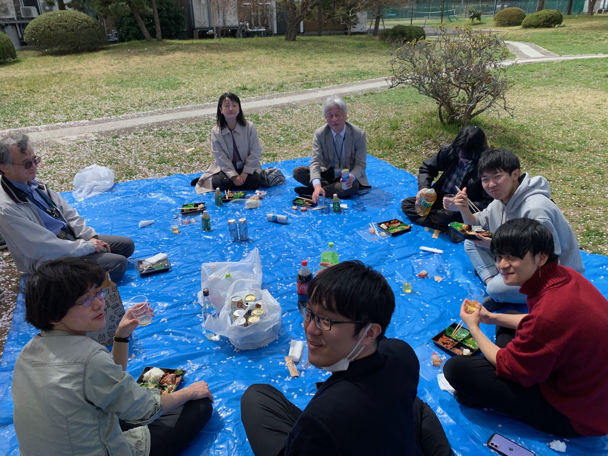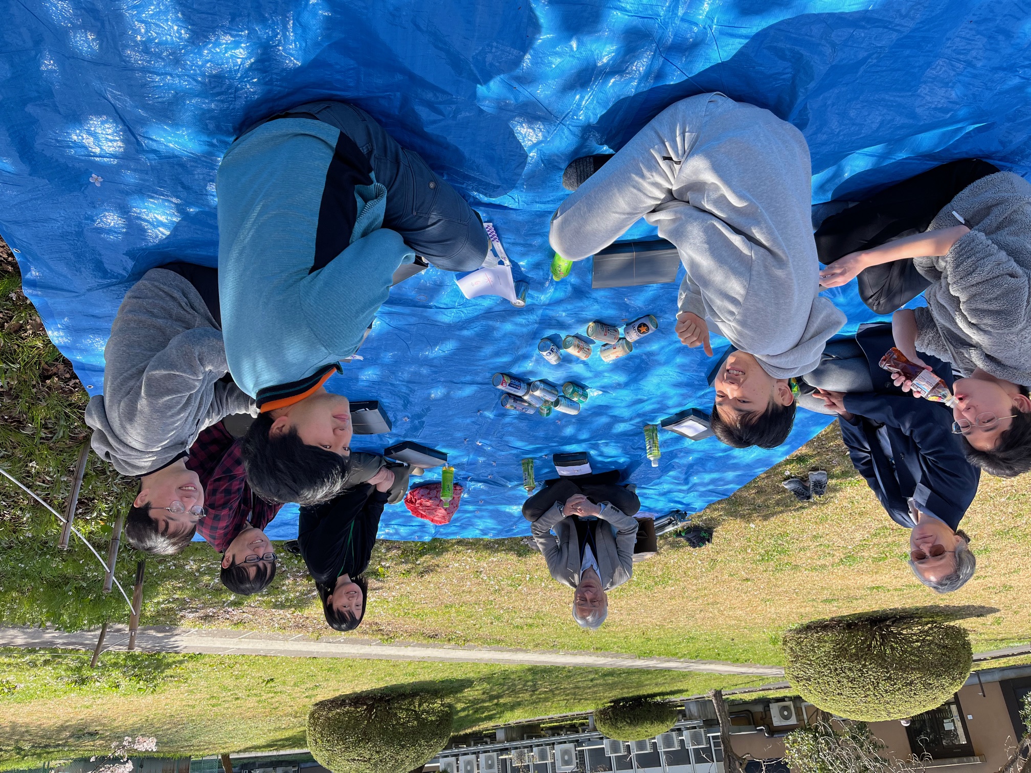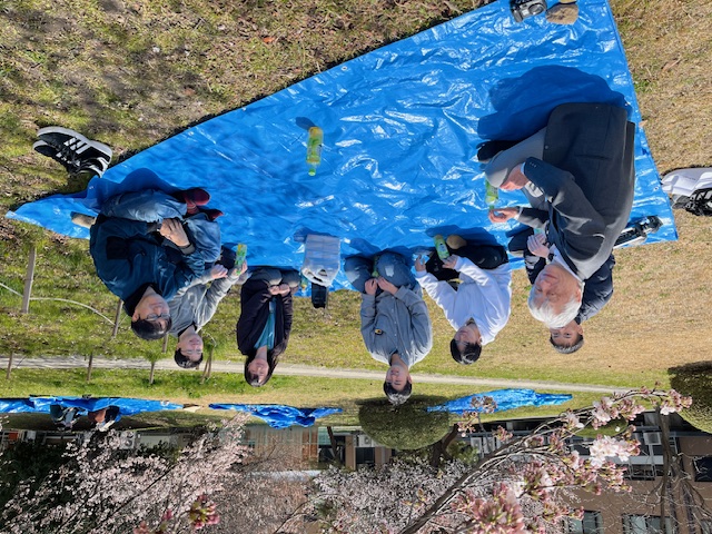 2023/4 : 研究室でお花見をしました。桜の木の下で、わきあいあいとした雰囲気でした。