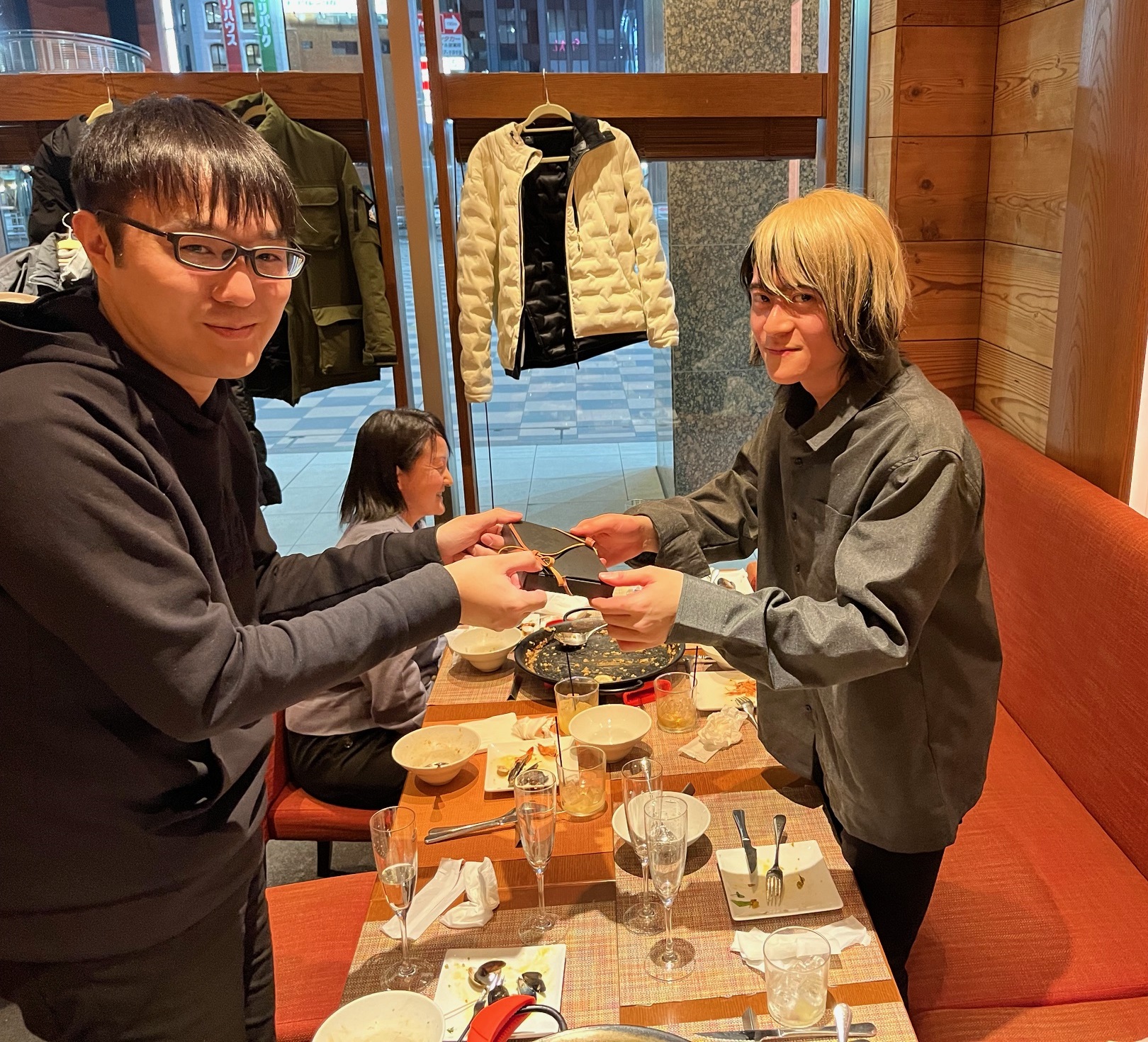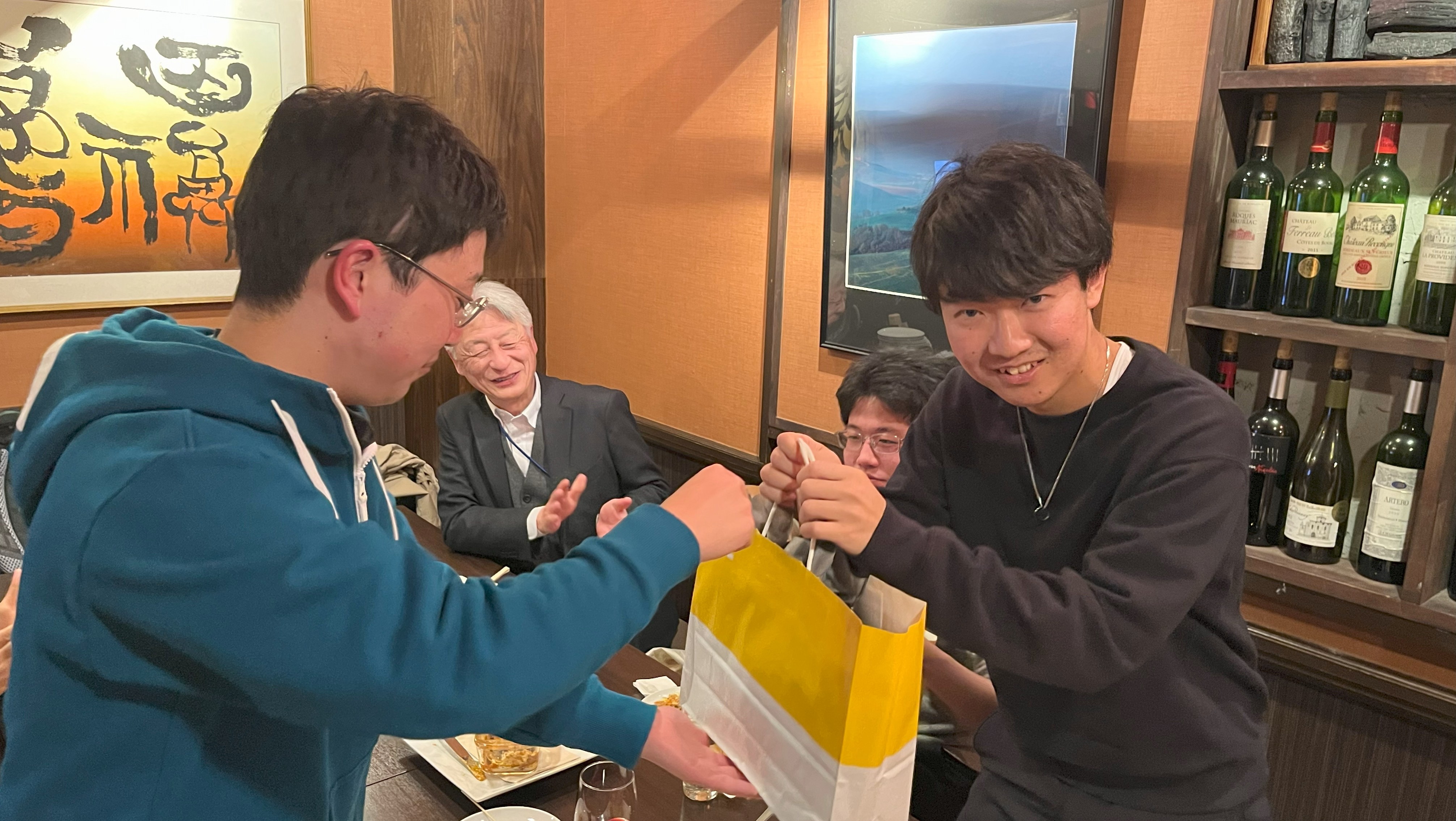 2024/2 : 中根君と大澤君の卒業&就職祝いをしました。新天地でのご活躍も期待しています!