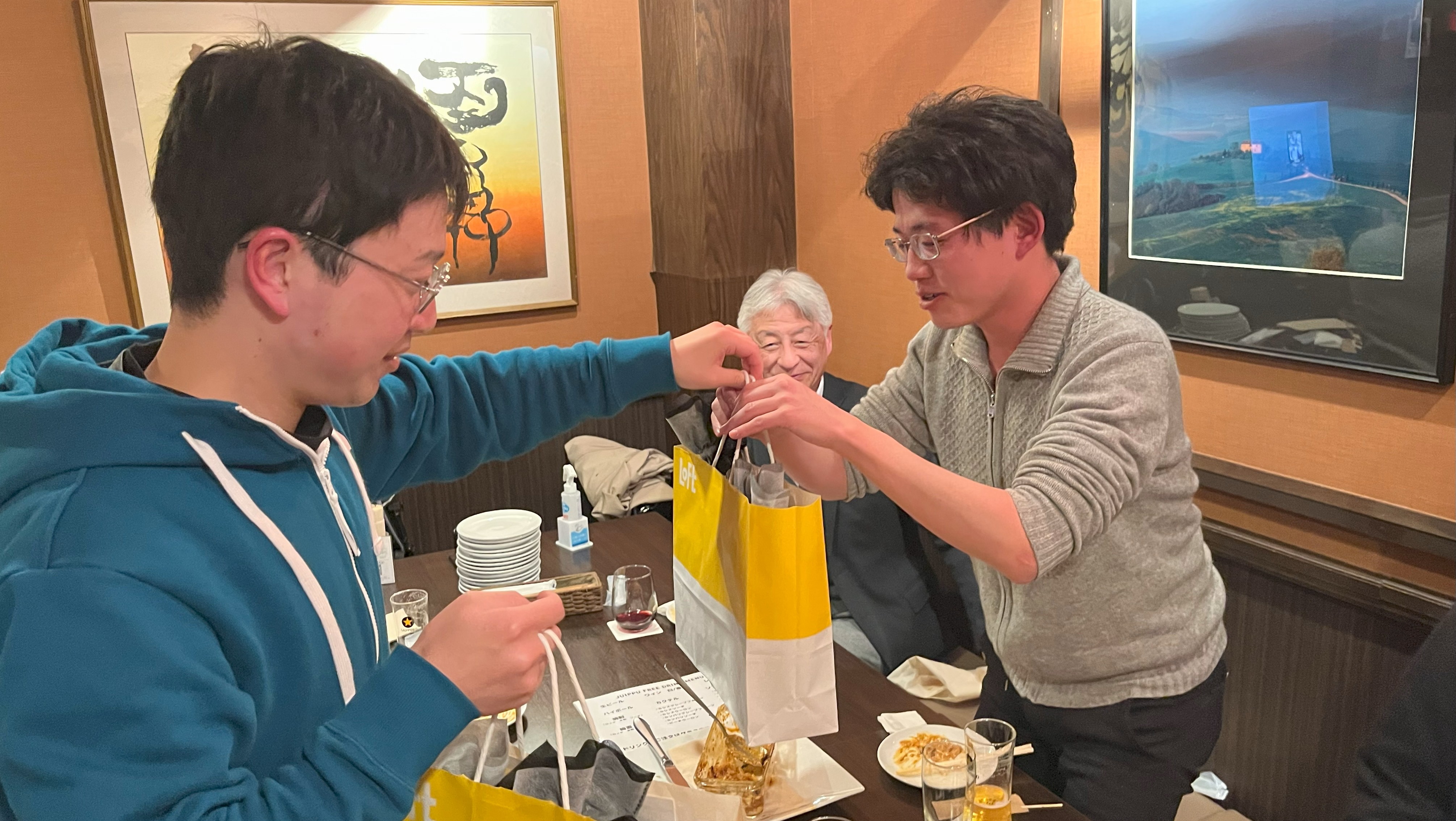 2025/2 : 斎藤君と羽田君の卒業&就職祝いをしました。新天地でのご活躍も期待しています!