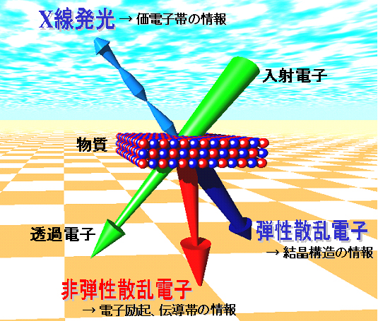 → 電子エネルギー損失分光法(電子励起、伝導帯状態密度の情報)