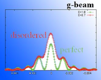 歪みのつくるインコヒーレント散乱を新たに検出しました。これを解析してドープ元素