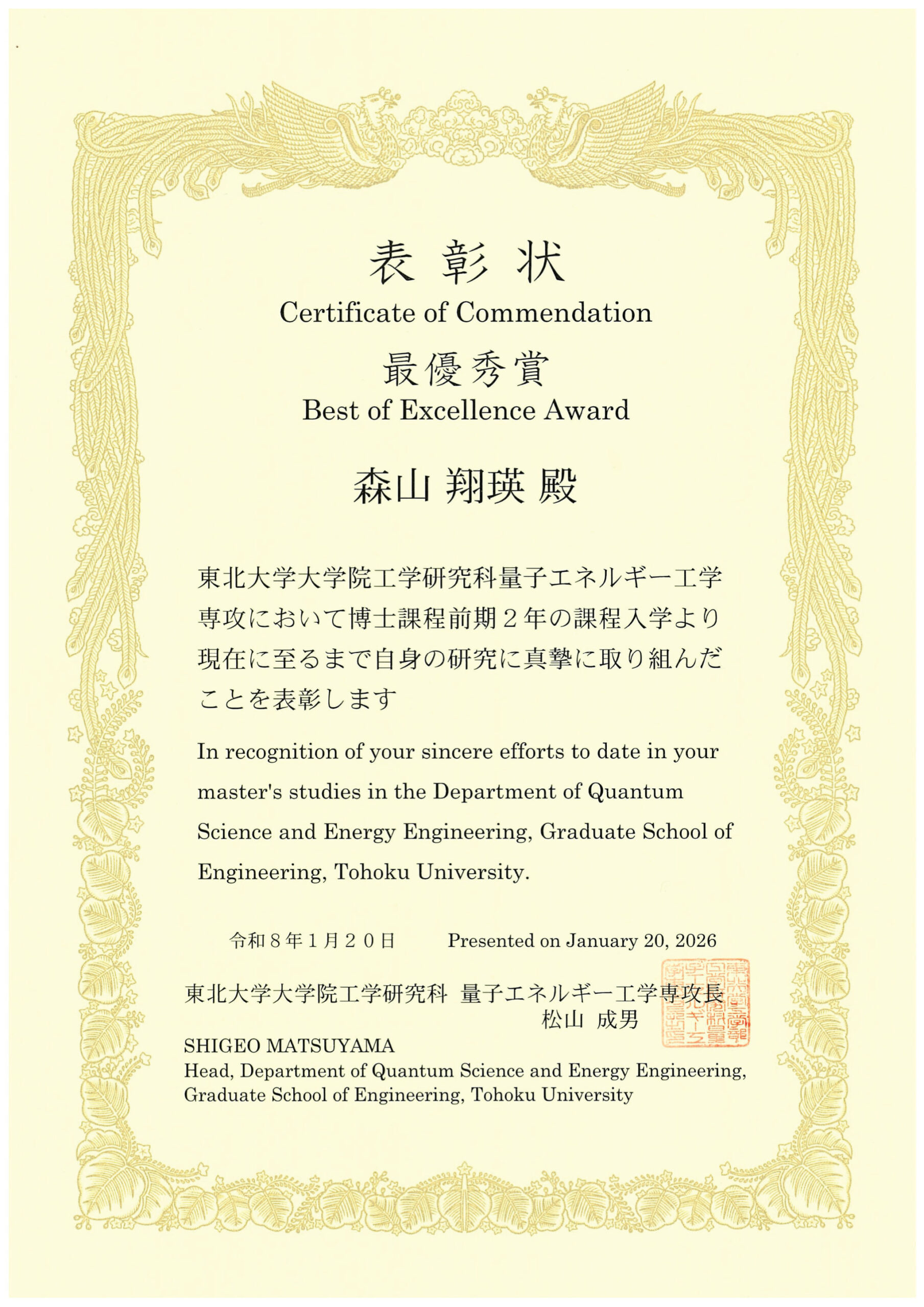 2026年1月20日 東北大学大学院工学研究科