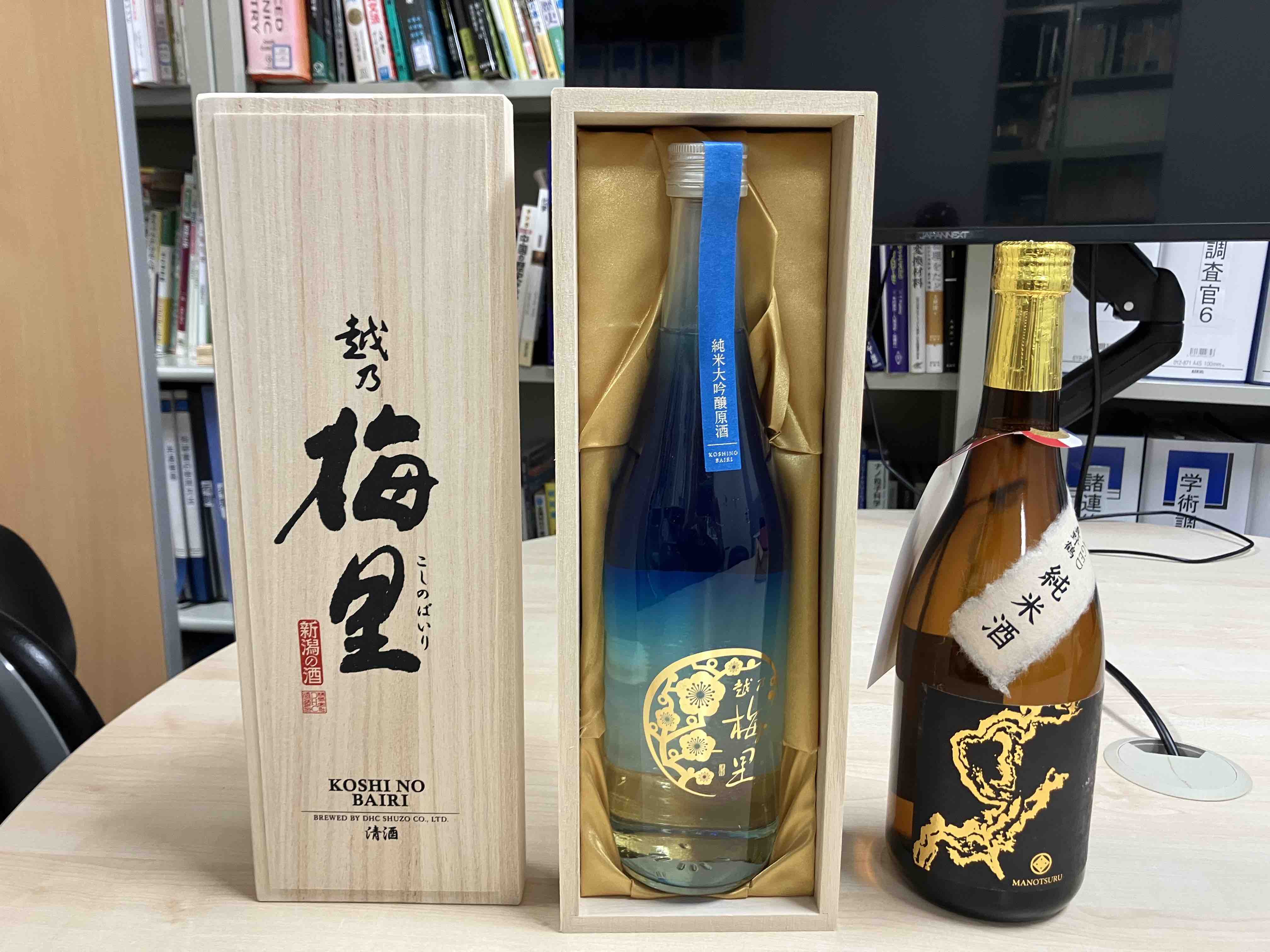 新潟の日本酒(越野梅里 純米大吟醸原酒と佐渡金山・真野鶴 純米酒)を頂きました!