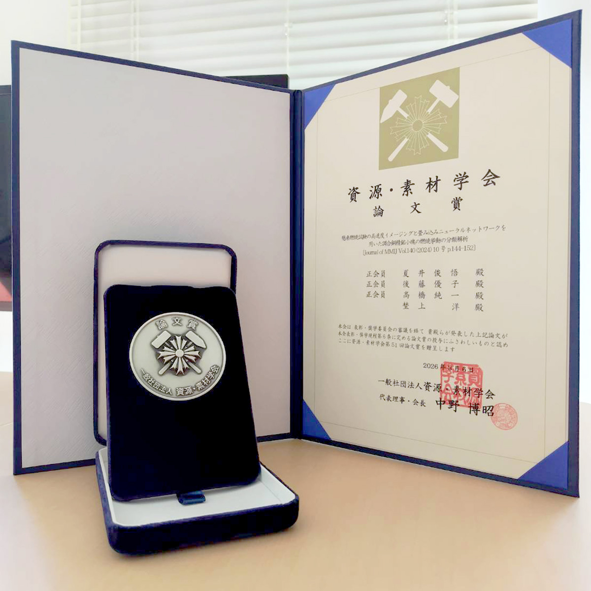 2026年03月06日、夏井俊悟准教授、埜上洋教授らが第51回 資源・素材学会「論文賞」を受賞しました。