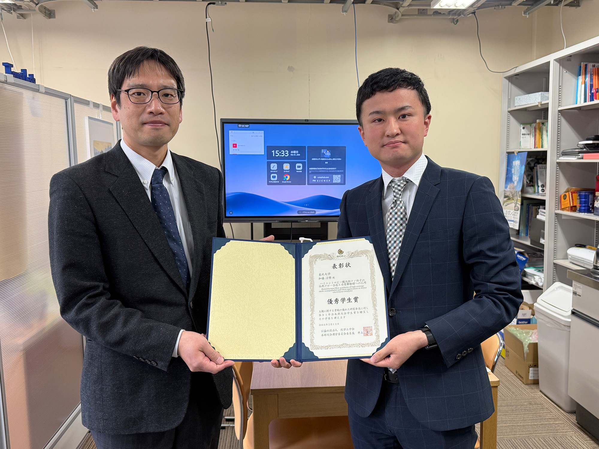 2026年03月19日、化学工学会第91年会において、笘居研究室の加藤涼雅さん(M2)が「優秀学生賞」を受賞しました。