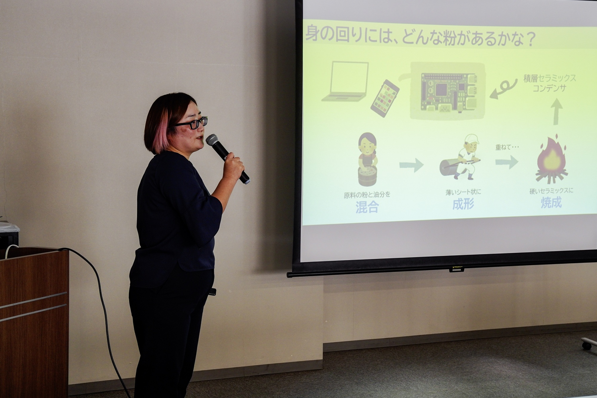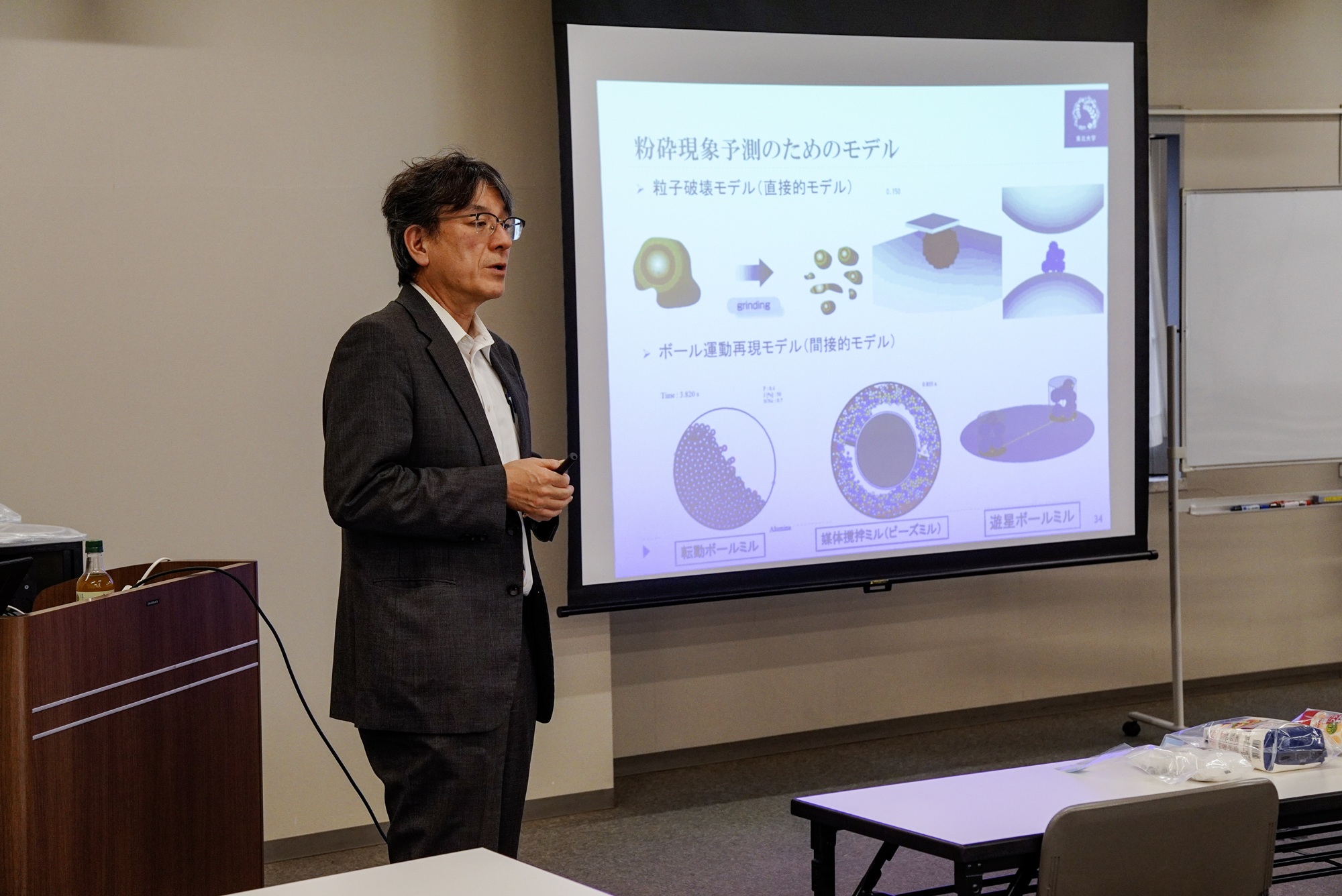 東北大学多元物質科学研究所の髙井千加 教授からは『身近な粉の面白さを見つけてみませんか ~幼虫の糞の形から雌雄が分かるかも?~』と題して、加納純也 教授からは『粉の動きを知る』と題して講演しました。身近な粉やカブトムシの幼虫を見たり触ったりしながらの講義で、受講者との活発なやり取りも見られ、講座内容に強い関心を持っていただくことができました。