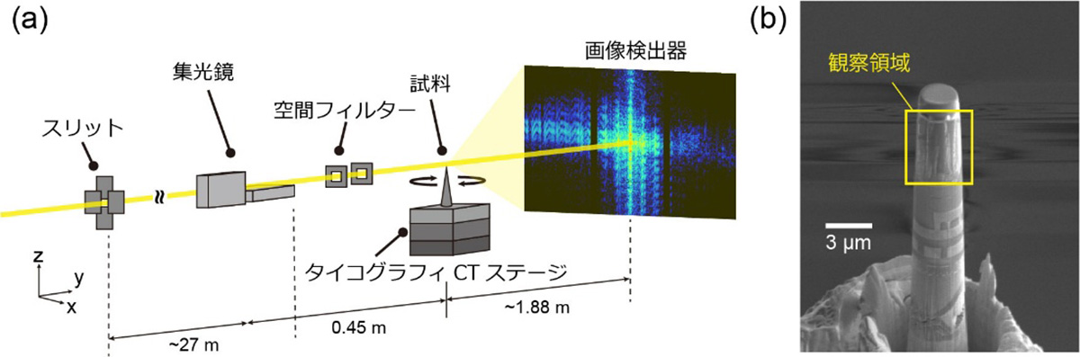 CMOSイメージセンサー(CIS)は、スマートフォンやカメラ、自動運転技術、医療機器などに広く利用されている光電子変換デバイスです。その性能向上には微細な画素構造の解析が不可欠です。しかし、CIS内部にはシリコン(Si)やシリコン酸化物(SiO2)などの軽元素で構成された複雑な多層構造が存在し、従来の電子線を用いた手法では非破壊かつ高解像な三次元観察が困難でした。