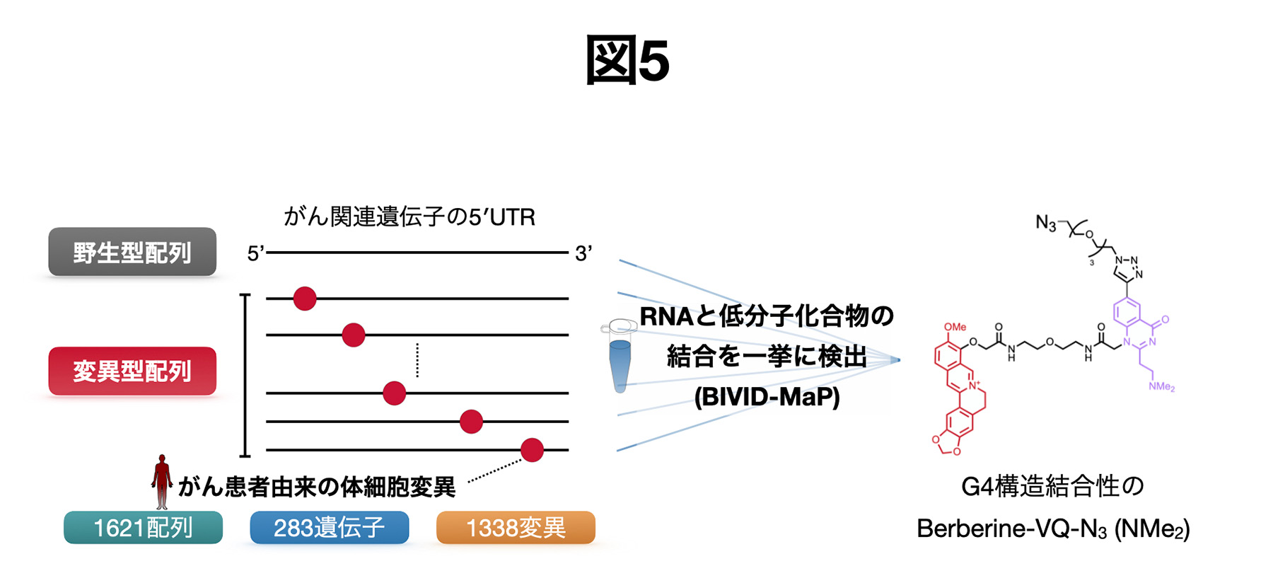 Fig. 6 Berberineと5’UTR内配列との結合を変化させてしまうがん関連変異の発見