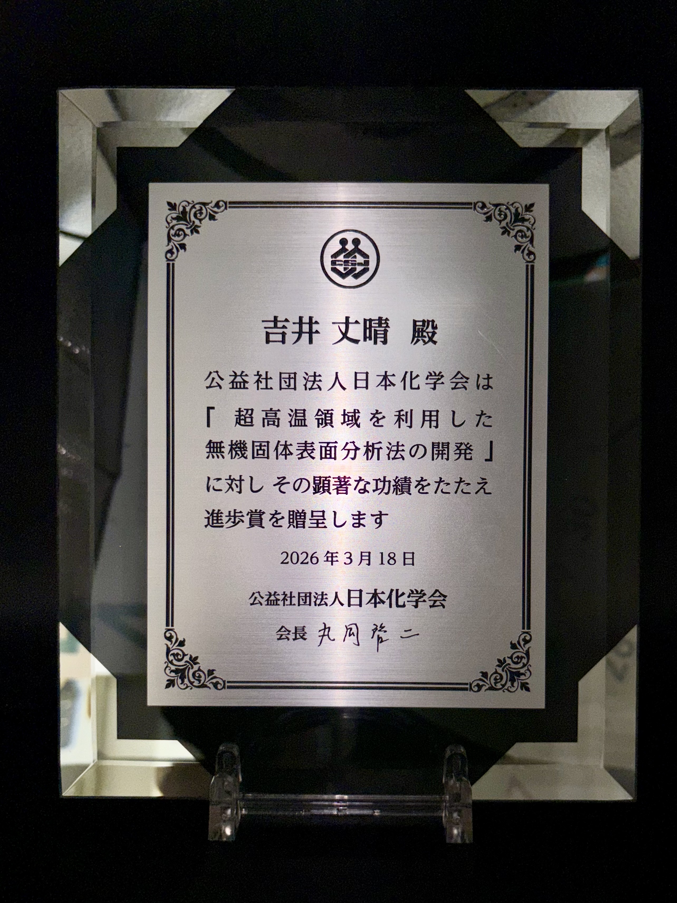 » 2026-3-18吉井丈晴准教授が、「日本化学会 進歩賞」を受賞しました。