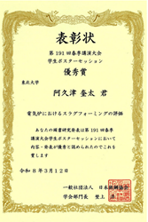 12) 受賞報告 — 日本鉄鋼協会第191回春季講演大会学生ポスターセッション