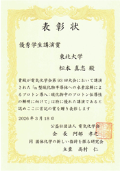 15) 受賞報告 — 電気化学会第93回大会「優秀学生講演賞」を受賞