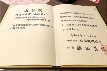 日本鉄鋼協会 共同研究賞「山岡賞」を受賞