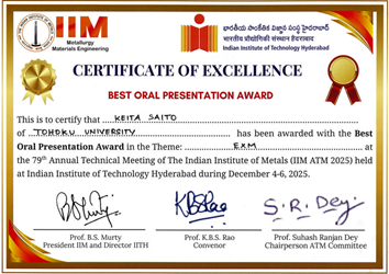 一般社団法人 資源・素材学会第51回 資源・素材学会「論文賞」をダブル受賞し、