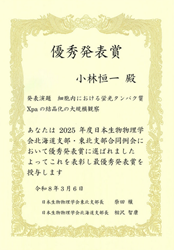 11) 受賞報告 — 2025年度 生物物理学会北海道支部-東北支部合同例会「優秀発表賞」を受賞